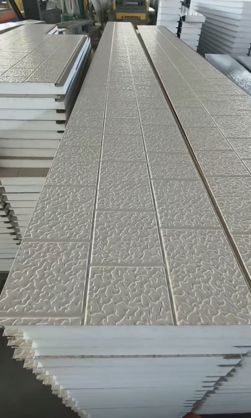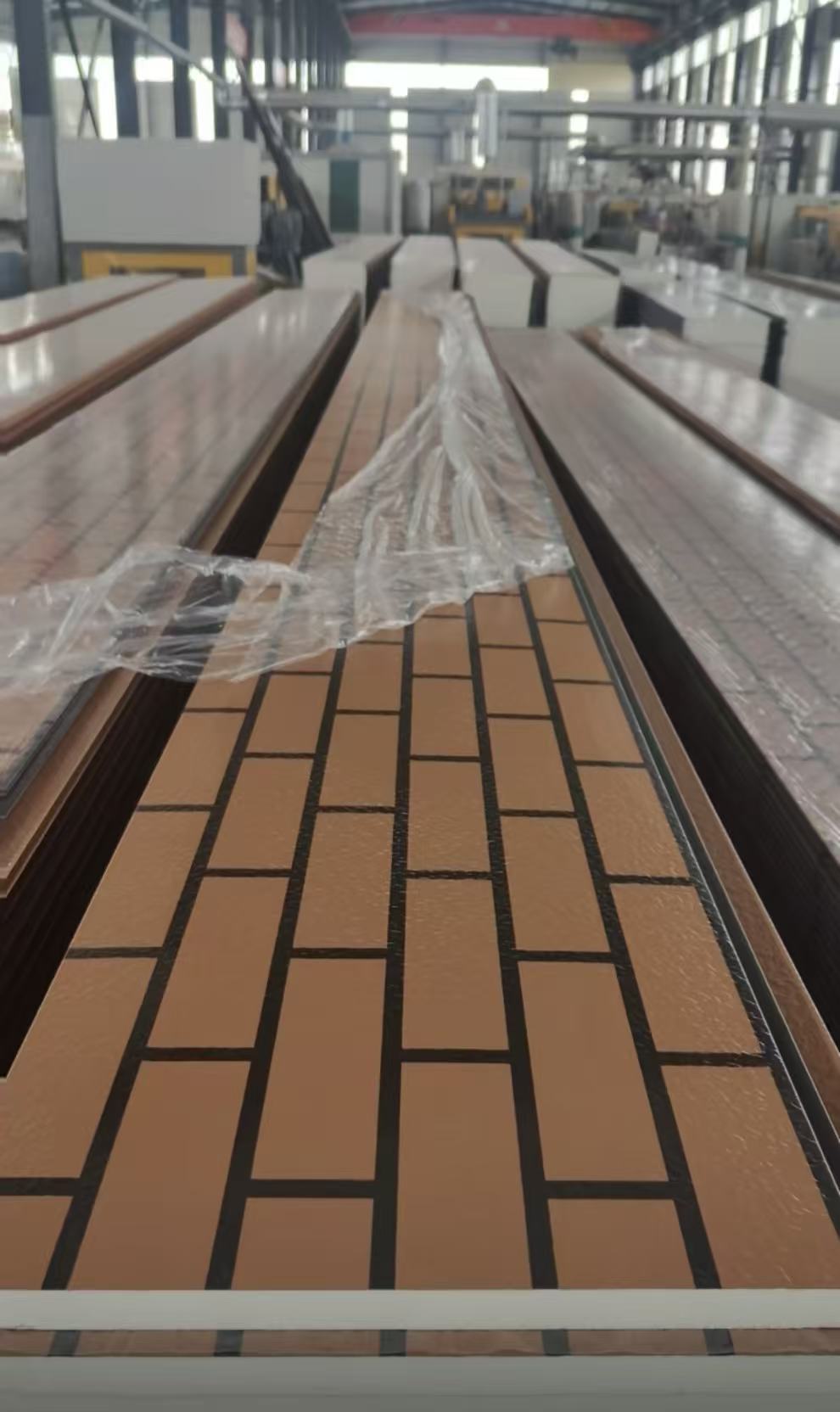 It has advanced continuous production technology for new exterior wall thermal insulation and decorative integrated panels and color steel composite thermal insulation panels, and can produce a variety of patterns such as brick patterns, elastic patterns, water ripples, marble patterns, etc., fully meeting the color and thermal insulation and decorative integration requirements of various types of buildings.